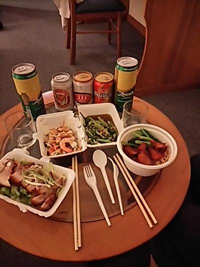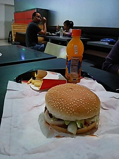 バーっぽい店で最後のアジア飯としてレモングラスサラダ、バーガーキングでワッパーのセット、他にビールを購入して、乾杯!