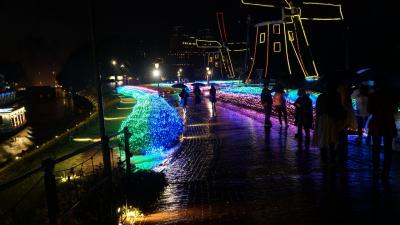 夜のイルミネーションです。雨のため傘を差しながらでしたが、イルミネーシ...