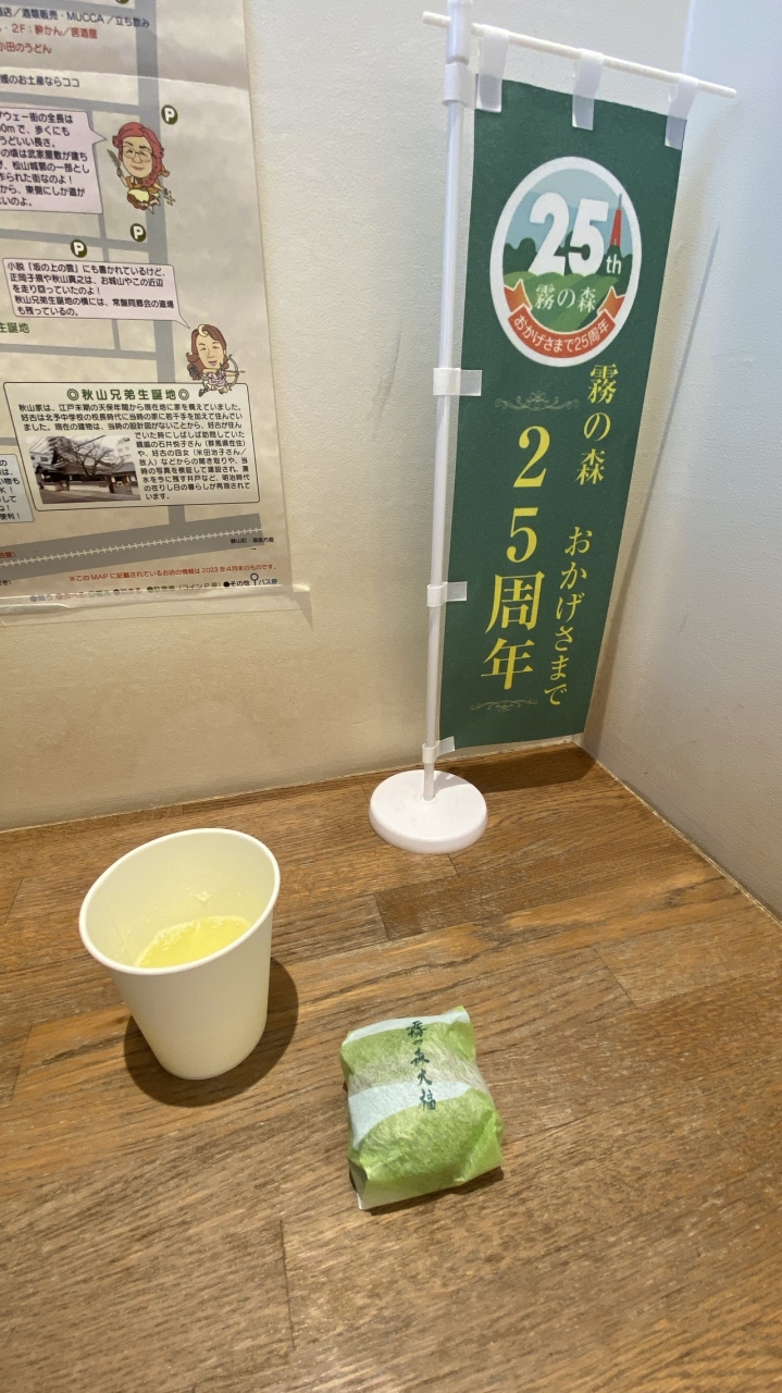 松山城ロープウェイに向かう途中にあるお店です。霧の森大福が人気ですぐ売り切れになるらしい。訪問した日は、平日の14時頃に行って、残りわずかでした。午前中に無くなることもあるので早めに行くのが良いですね。店内でイートインも出来ます。