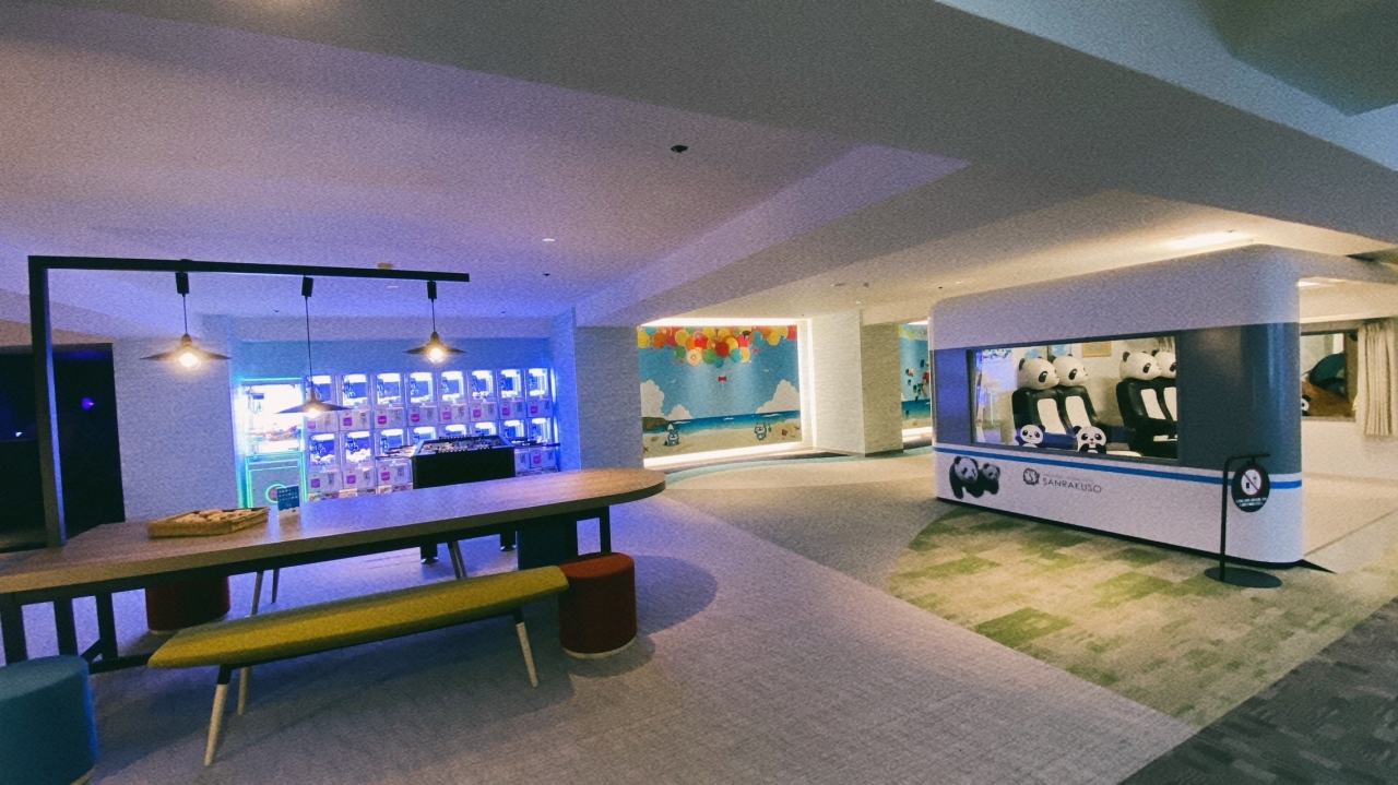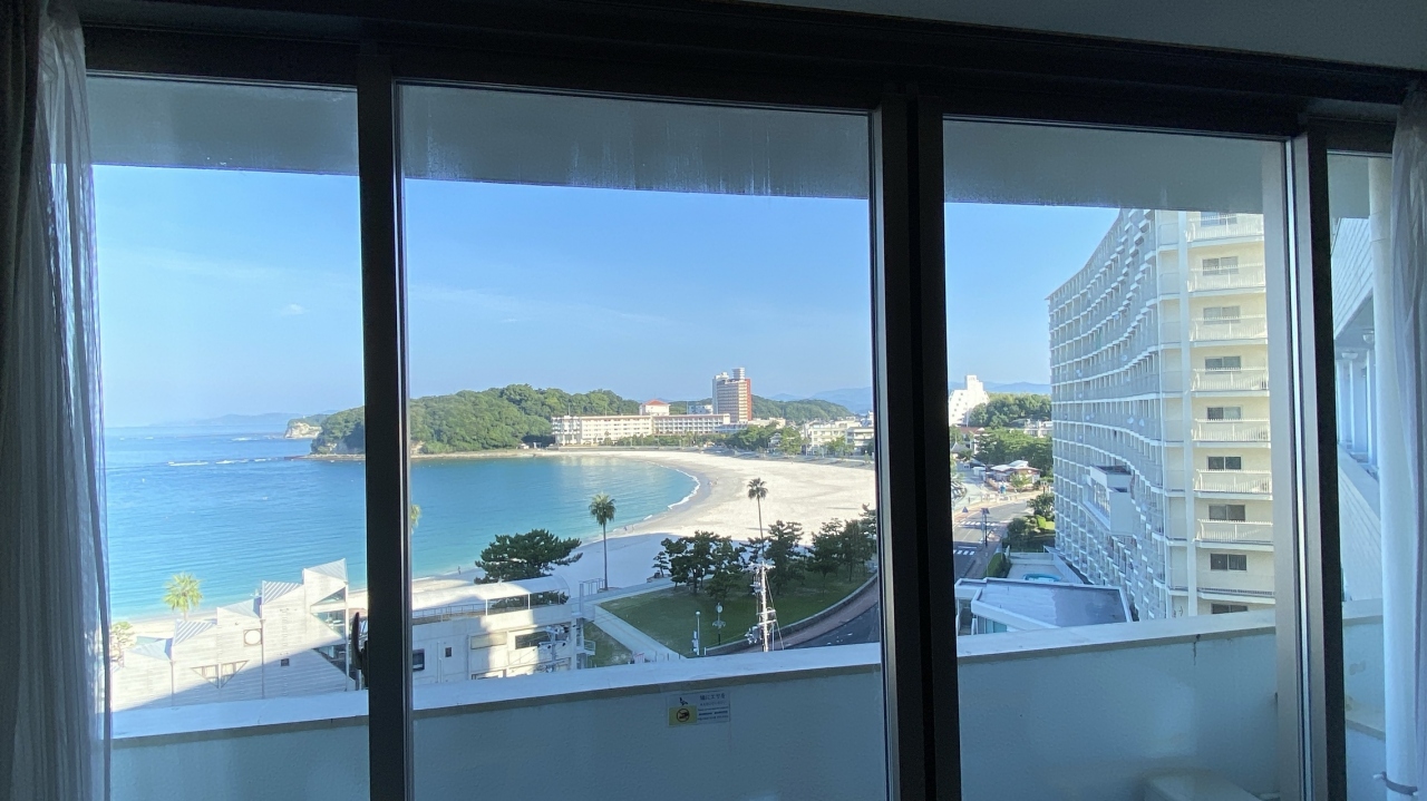 目の前に白良浜ビーチが見えるホテルです。昼も夜も素晴らしい景色を堪能できます。館内では、温泉あがりに寛げる広いスペースがあり、フリードリンクでゆったり過ごせます。子供が楽しめる遊び場もあり家族連れの宿泊はよいですね。外には帆船プールがあり夜のライトアップが綺麗です。夜は周辺が暗いですね。最寄りのコンビニは徒歩3分くらいにローソンがあります。