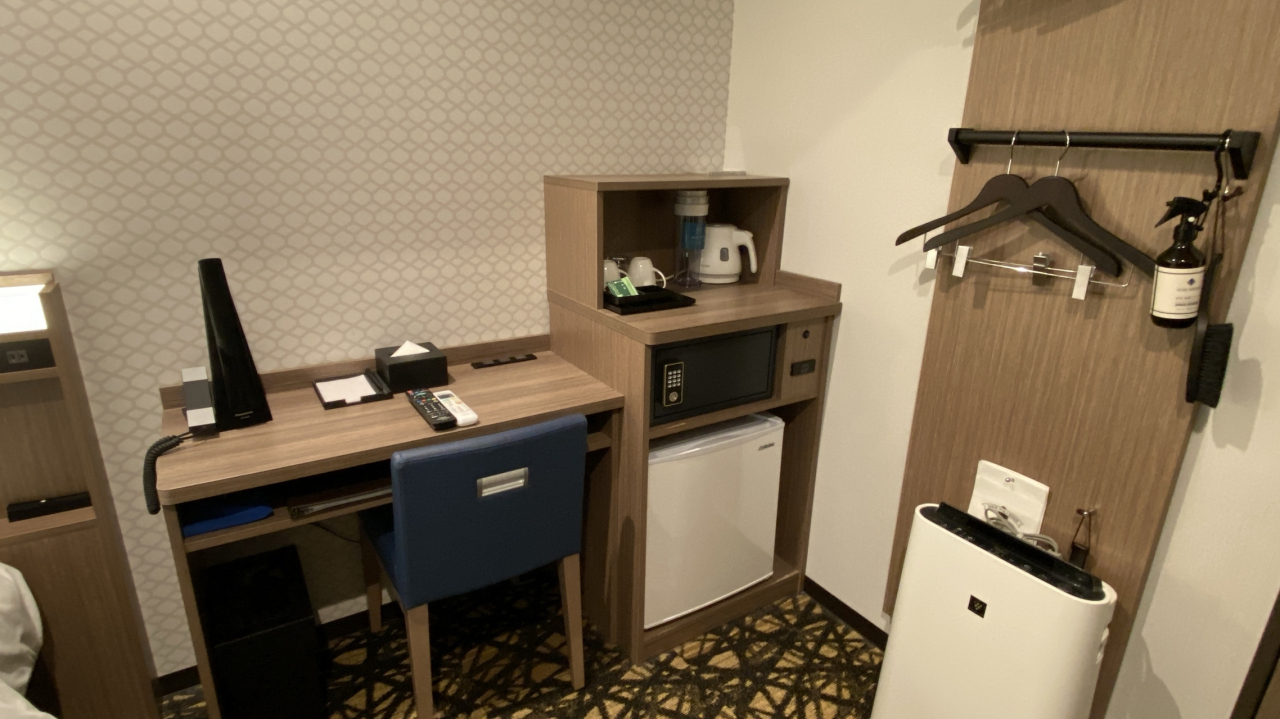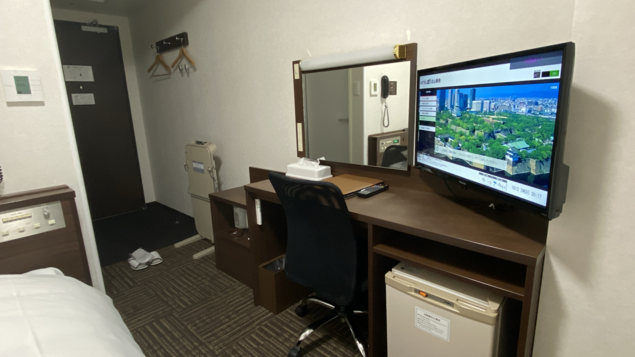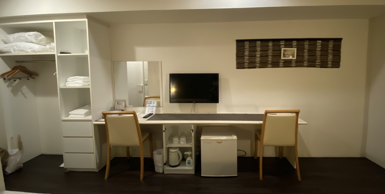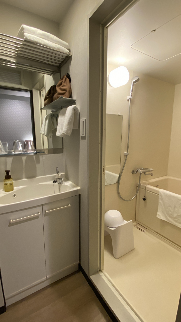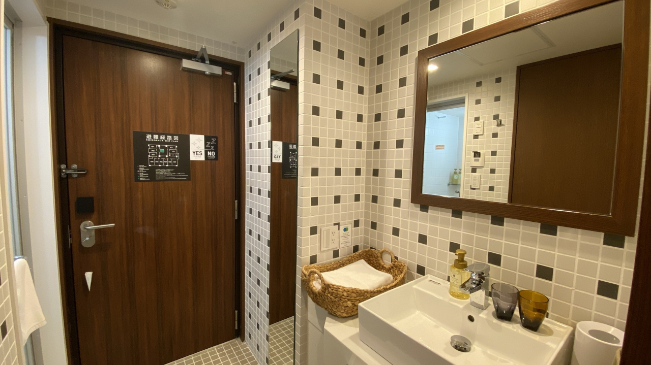 最寄り駅は地下鉄栄駅で徒歩5分。セントラルパークという出入り口からは3分くらい。コンビニは、ファミマとセブンイレブンがあります。無料のコーヒーサービスが7:00~24:00まで利用出来たり、自転車の無料貸し出しもありました。客室はキレイで、洗面台のタイルが可愛いです。バスタブは無くシャワーのみでトイレ別です。便利だったのは、机の他にもう一つ台があったことです。その台に荷物を置いて、出し入れ出来たのが良かったです。