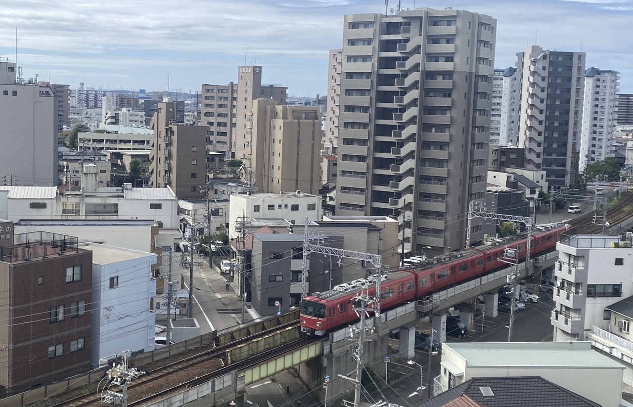最寄りの熱田神宮伝馬町駅から徒歩3分くらいのビジネスホテル。名古屋中心地の土曜宿泊は高めなので、少し離れた熱田にし宿泊代をおさえました。熱田神宮まで歩いて行ける距離で立地はとても良いです。客室は、電車が見えるトレインビューでした。電車の音は、それほど気にならなかったです。周辺にお店は少ないですが、コンビニ1軒とコメダ珈琲があります。