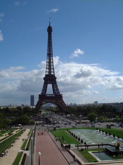 エッフェル塔に到着。飛行機テロ直後で、ランドマーク的な建物に登るのは、...