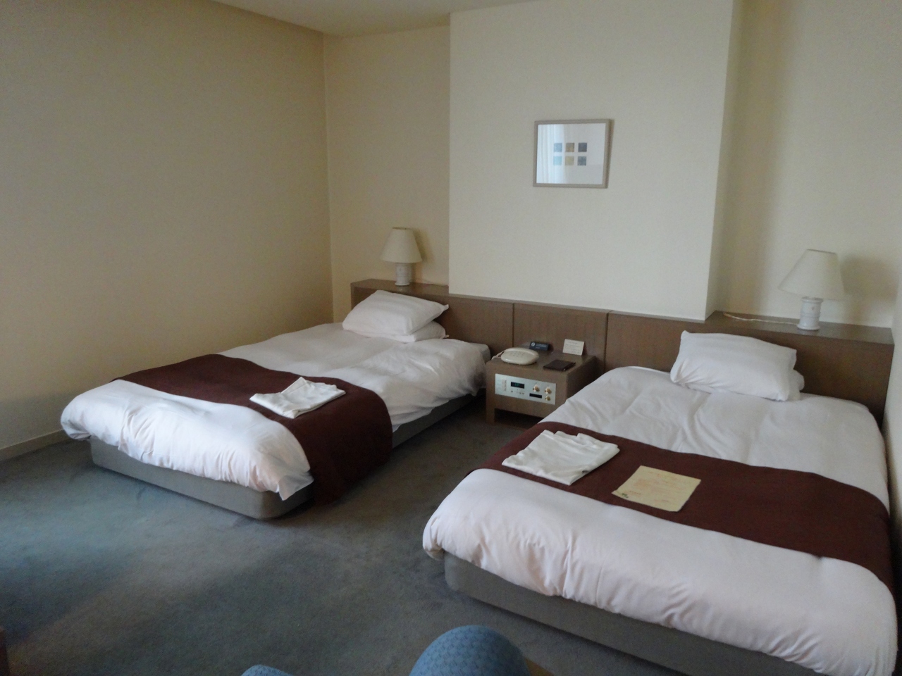 部屋はサンルートホテルらしく,清潔で機能的なのですがやはり狭い感じは否めません.