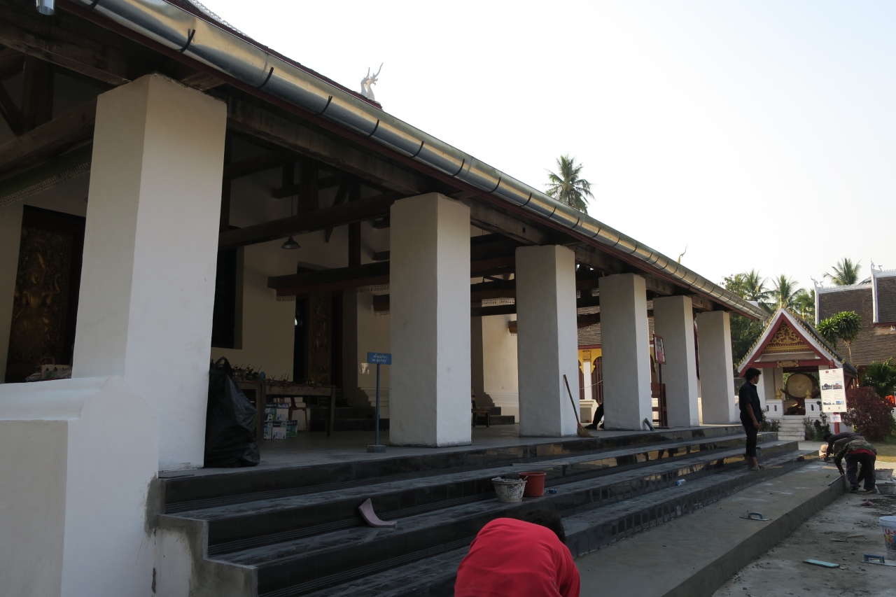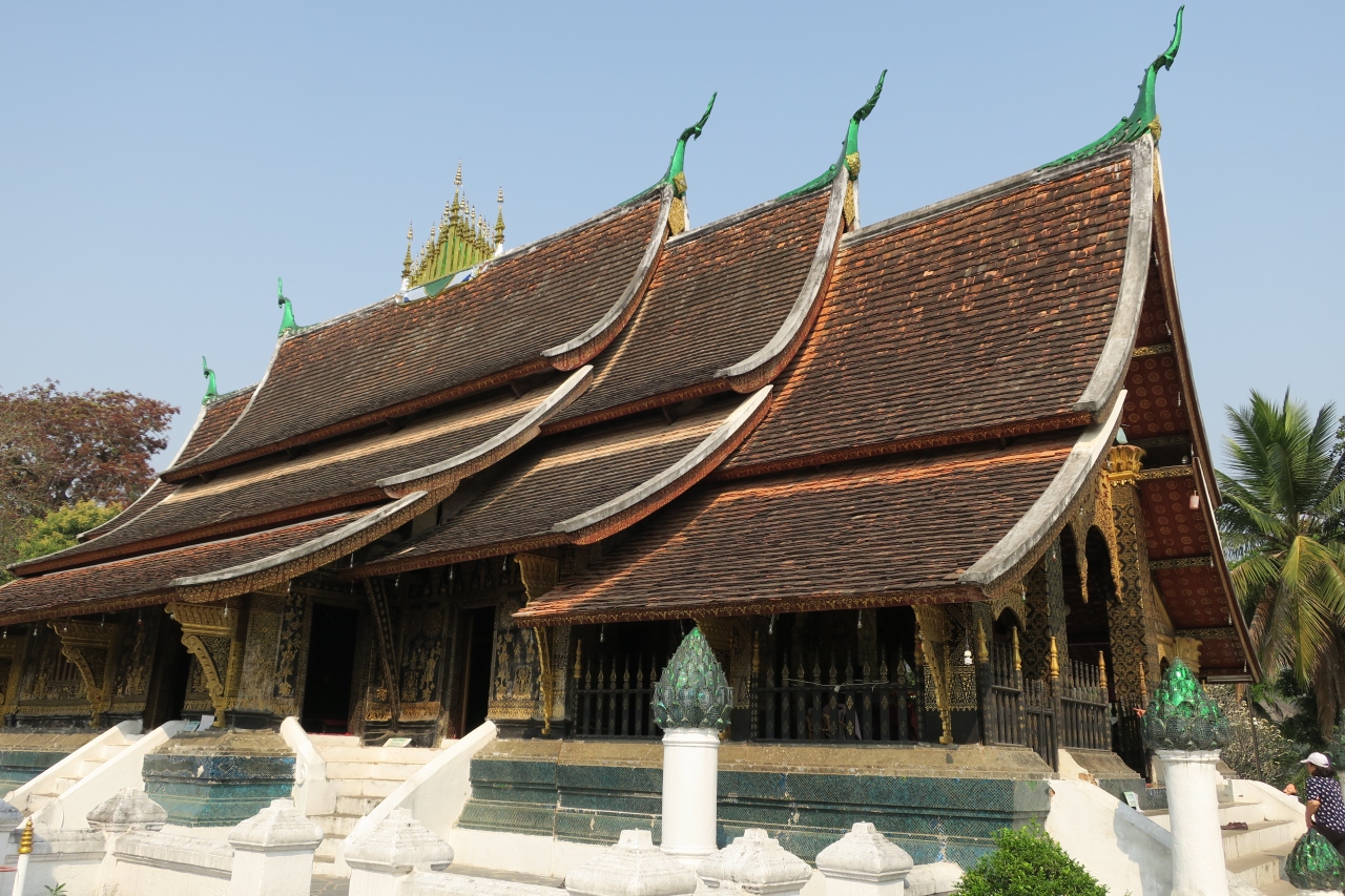 ルアンパバーン様式と呼ばれる,何重にも重なった屋根を持つ本堂を中心に,いくつかの建物からなっています.観光客がたくさん来ていました.- 旅行時期