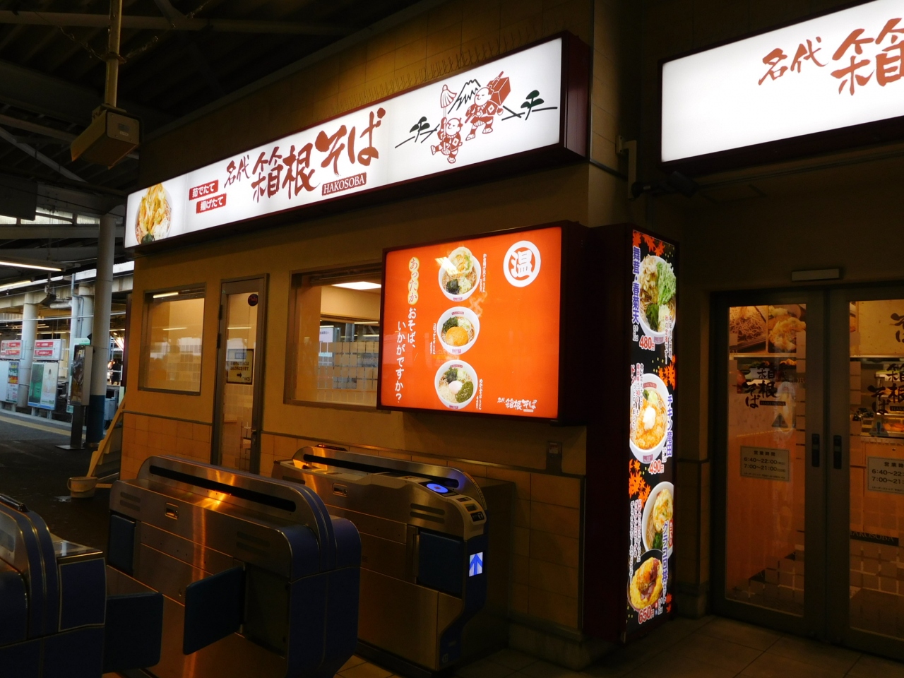 小田急藤沢駅の改札口の両側にあります.1軒のお店ですが改札口の中と外から利用できます.