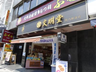 文明堂といえばおいしいカステラで有名ですが,ここのお店にはベイスターズカラーの幕が飾ってあり,横浜を前面に押し出している感じが意外でした.