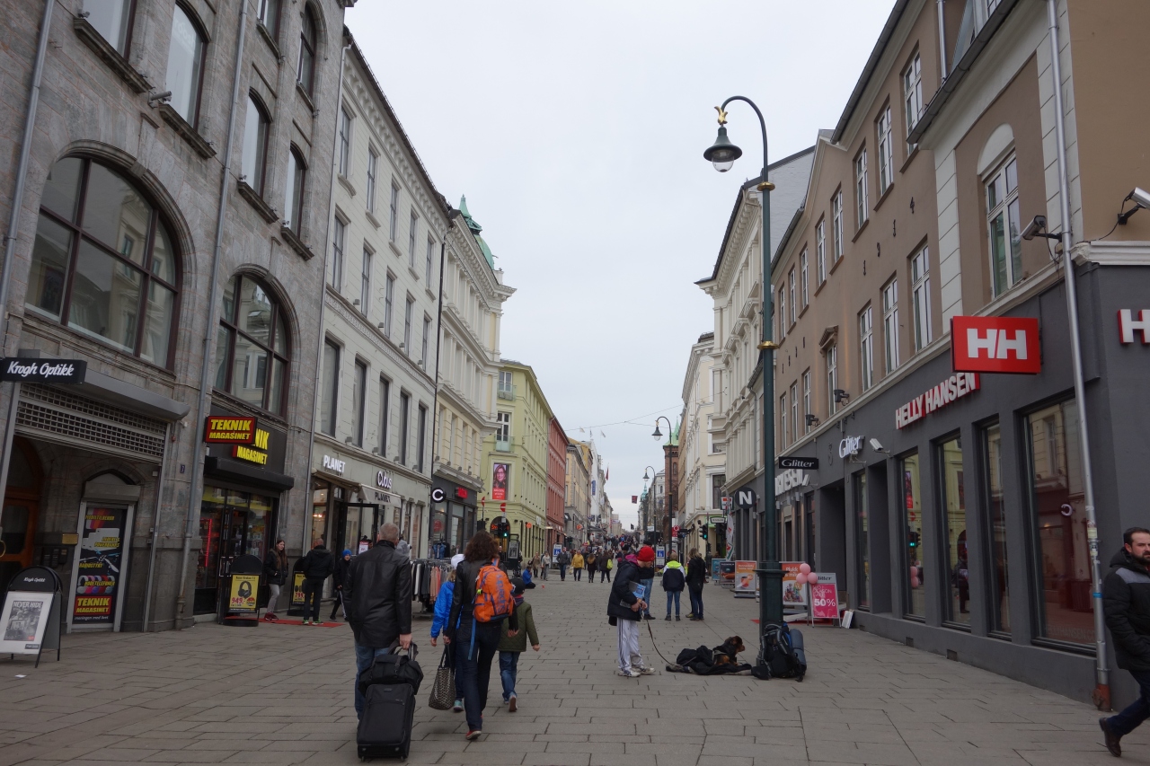 両側にはたくさんのお店やレストラン,カフェなどがあり,またオスロ大聖堂などの観光地もあるので,たくさんの人でにぎわっていました.