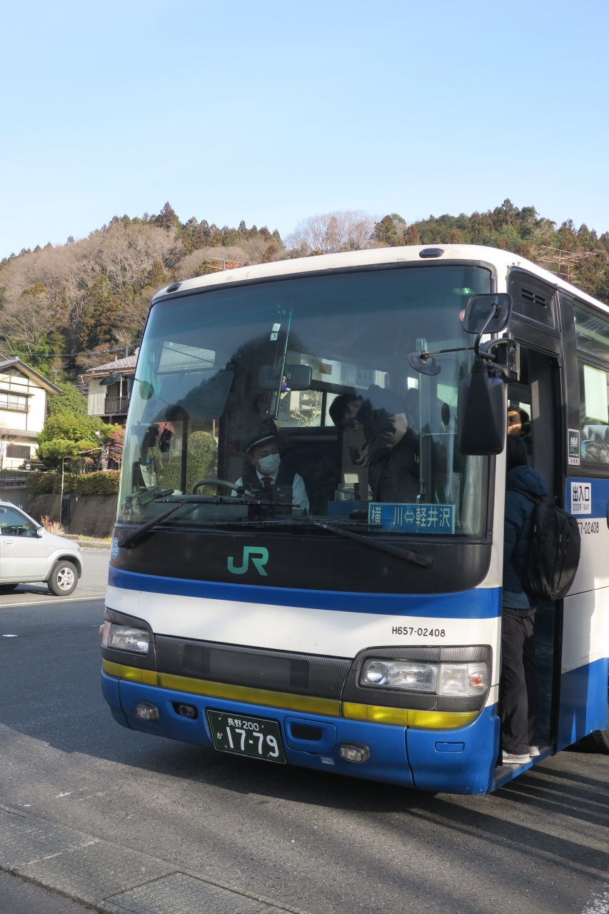信越線横川駅で降りたお客さん(少なかったですが)のほとんどが駅前からJRバスに乗りました.運転手さんが「青春18きっぷでは乗れません」と繰り返していました.