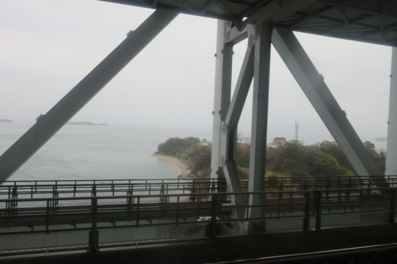 かつて,岡山県の宇野から香川県の高松まで1時間かけて連絡船に乗った本州と四国の間が,今ではこの瀬戸大橋のおかげで15分くらい(鉄道の場合)で渡ってしまいます.