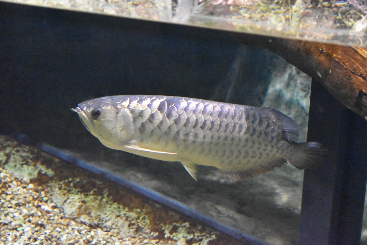 かわいいコツメカワウソを見ると,その近くには熱帯の魚アロワナもいます.