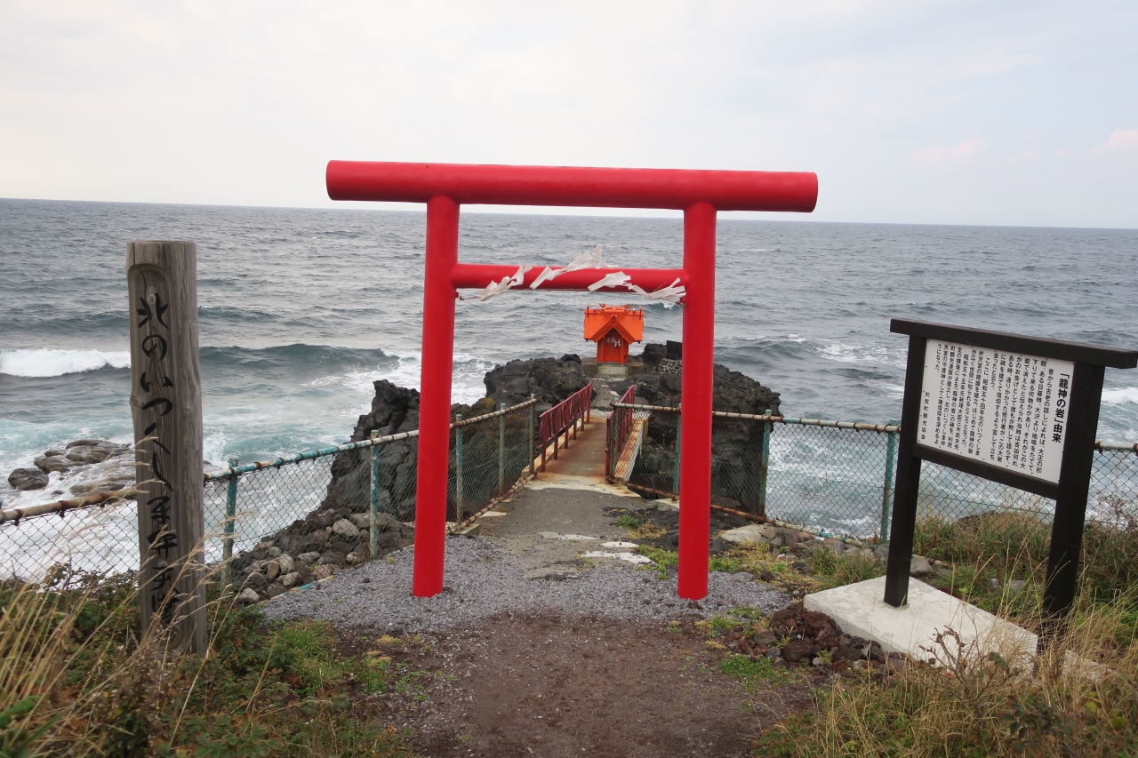 鳥居をくぐり,橋を渡ると,赤いほこらのある岩に着きます。この橋は渡るのがけっこうこわかったです。