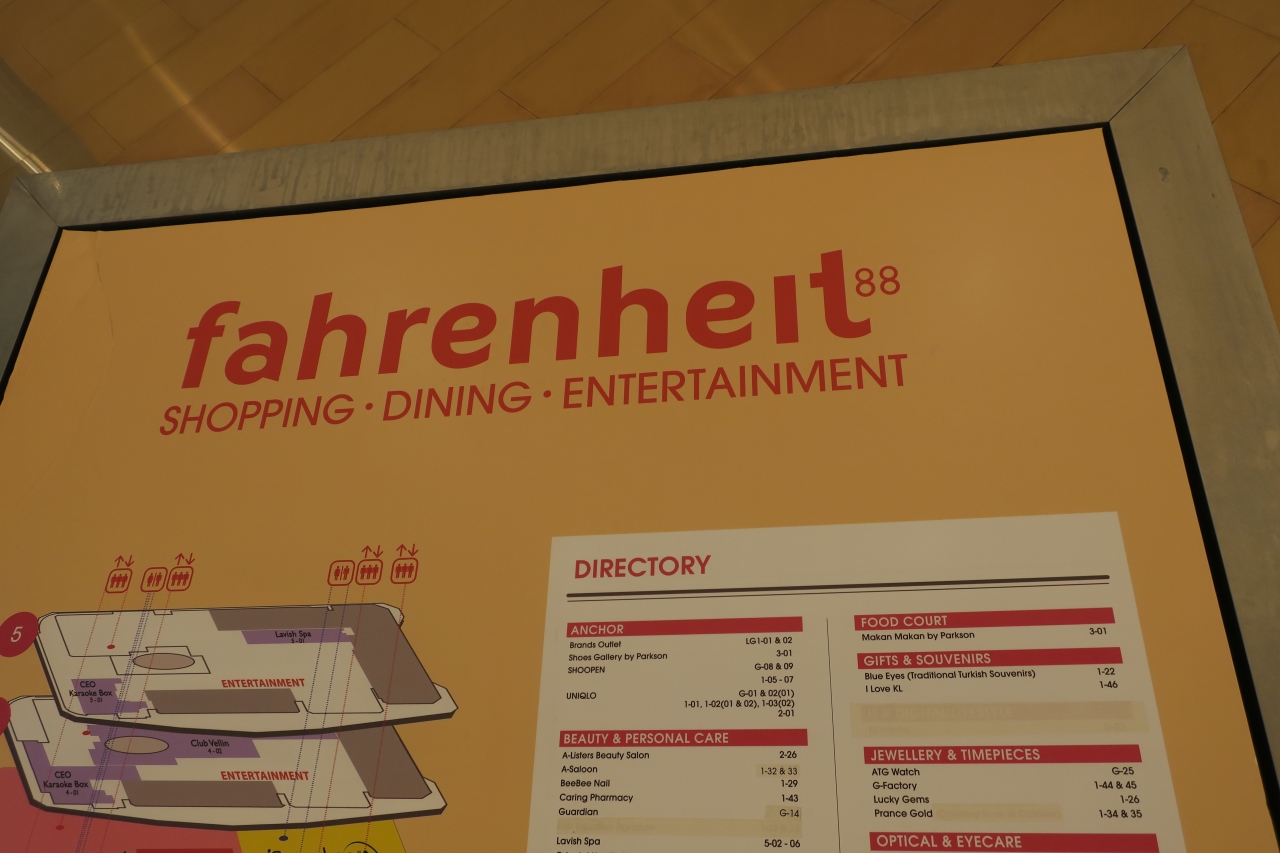 ブキッビンタンのファーレンハイト88にあるユニクロは,マレーシア初のユニクロだそうです.そのためか,1階の入口ではFahrenheitよりも「ユニクロ」の文字の方が目立っている感じでした.値段は思ったより高かったですが品揃えはよかったです.