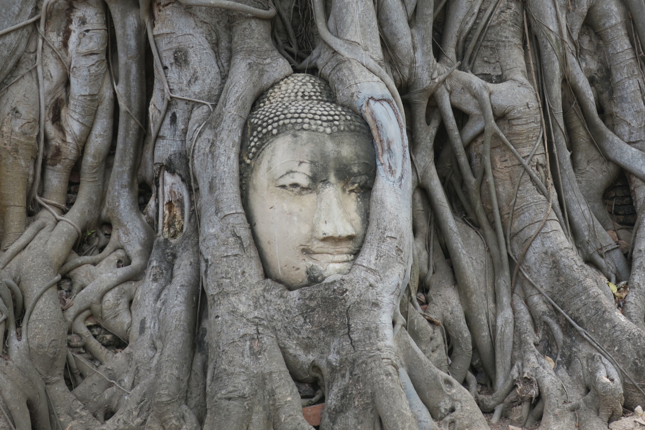 以前に破壊された仏像の頭の部分が,菩提樹に取り込まれているのです.
