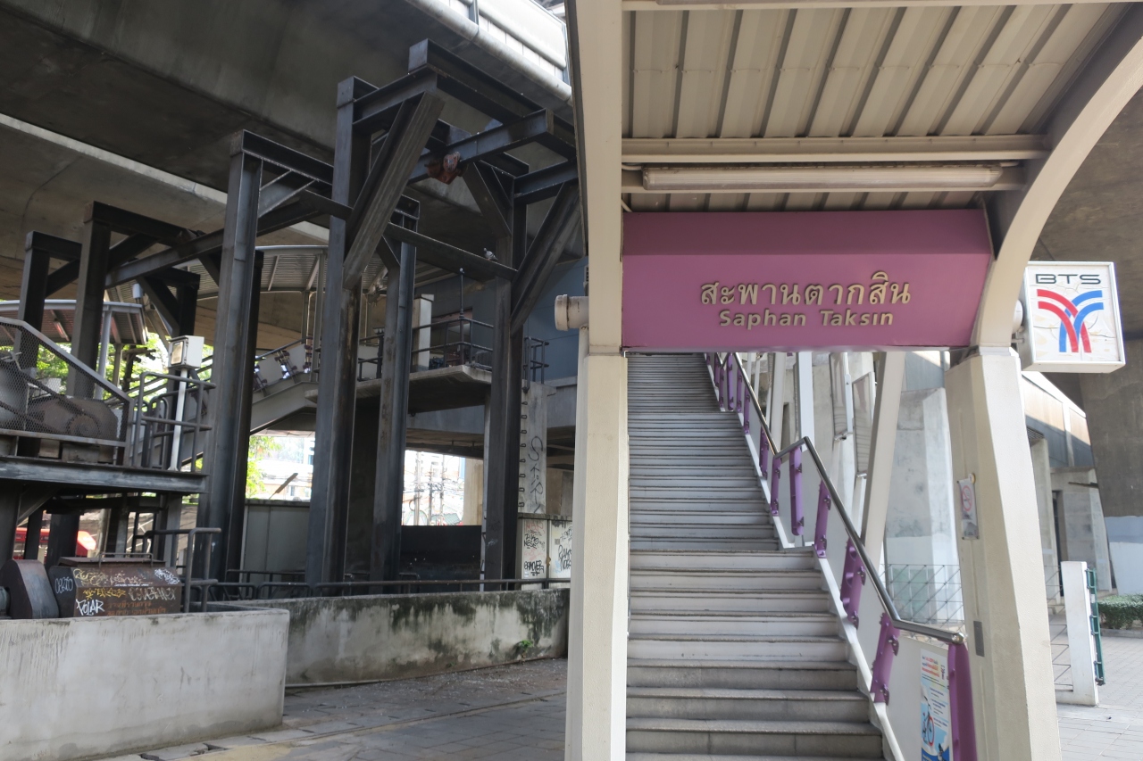 BTSシーロム線の駅です.MRTのシーロム駅はすぐそばで乗り換え駅になっており,乗り換えのお客さんもたくさんいたようです.駅に直結したショッピングセンター「シーロムコンプレックス」があり,買い物にとても便利でした.