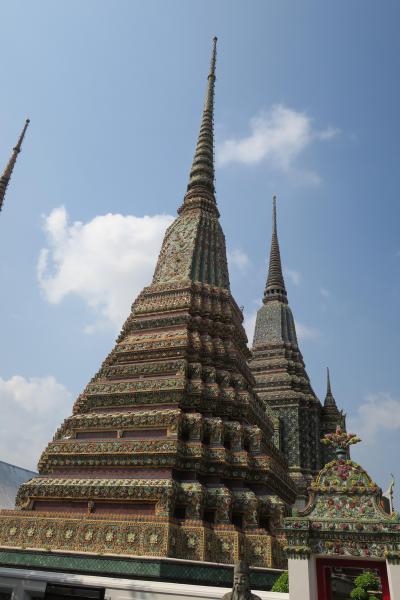 仏塔は3つありますが,それぞれの高さは約40メートル.いかにもタイのお寺といった感じが美しいと思いました.境内にあるくちはてた仏像がいたましいです.- 旅行時期