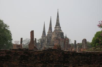 アユタヤの歴代王3人の遺骨が納められている仏塔が有名な寺院です.