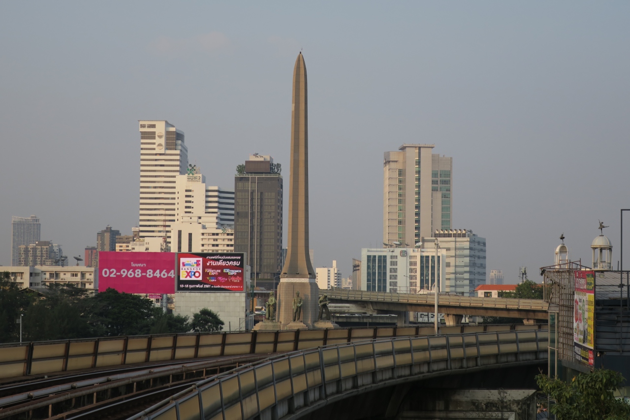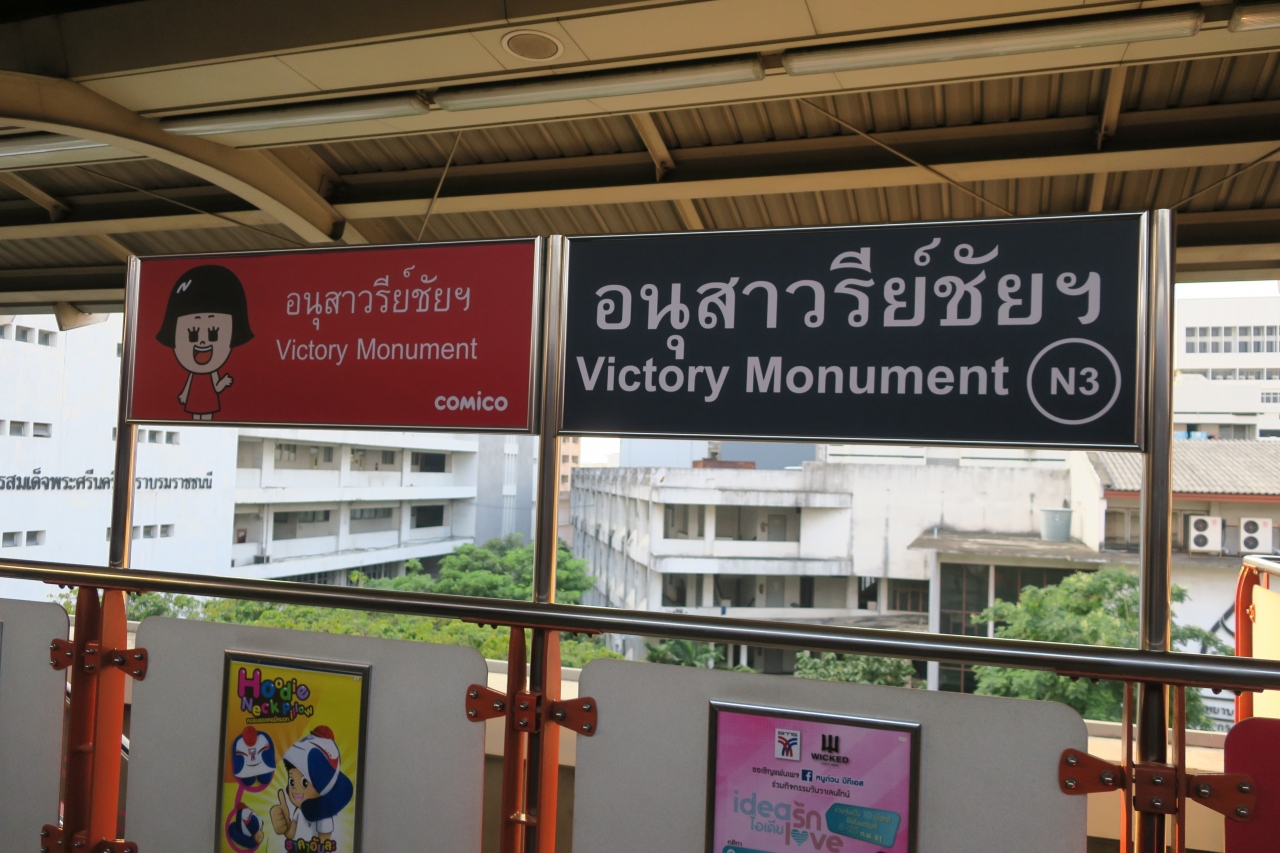 その名の通り,戦勝記念塔(インドシナ紛争で戦没したタイ軍兵士を慰霊するためのものだそうです)の最寄り駅で,ホームの北端から全体を見ることができます.