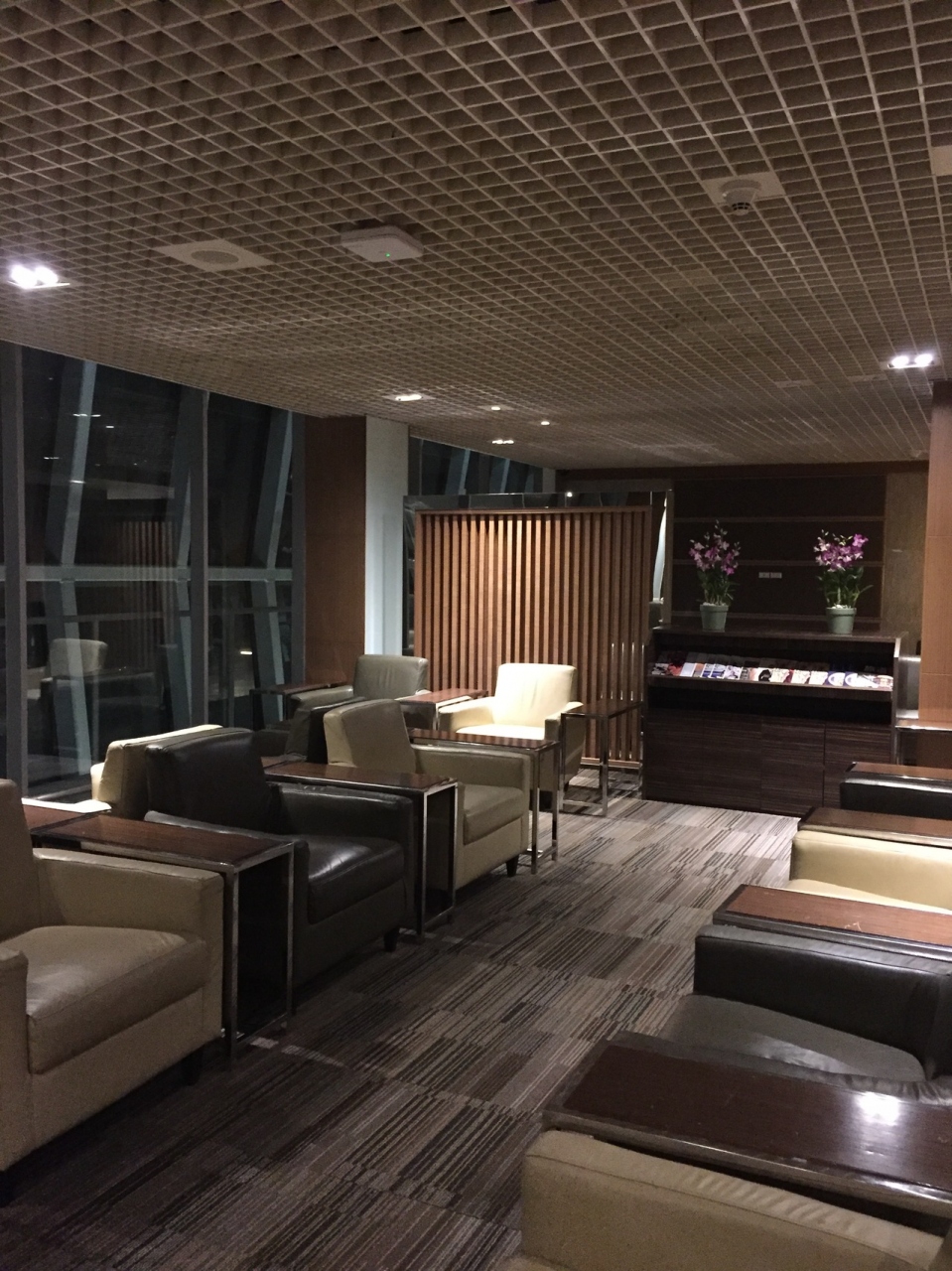 残念ながら、食べ物はあまり充実していませんが、飲み物はいろいろあり、また薄暗くなっているので、酒でも飲みながら静かに待つ雰囲気です。ソファも快適でした。- 旅行時期