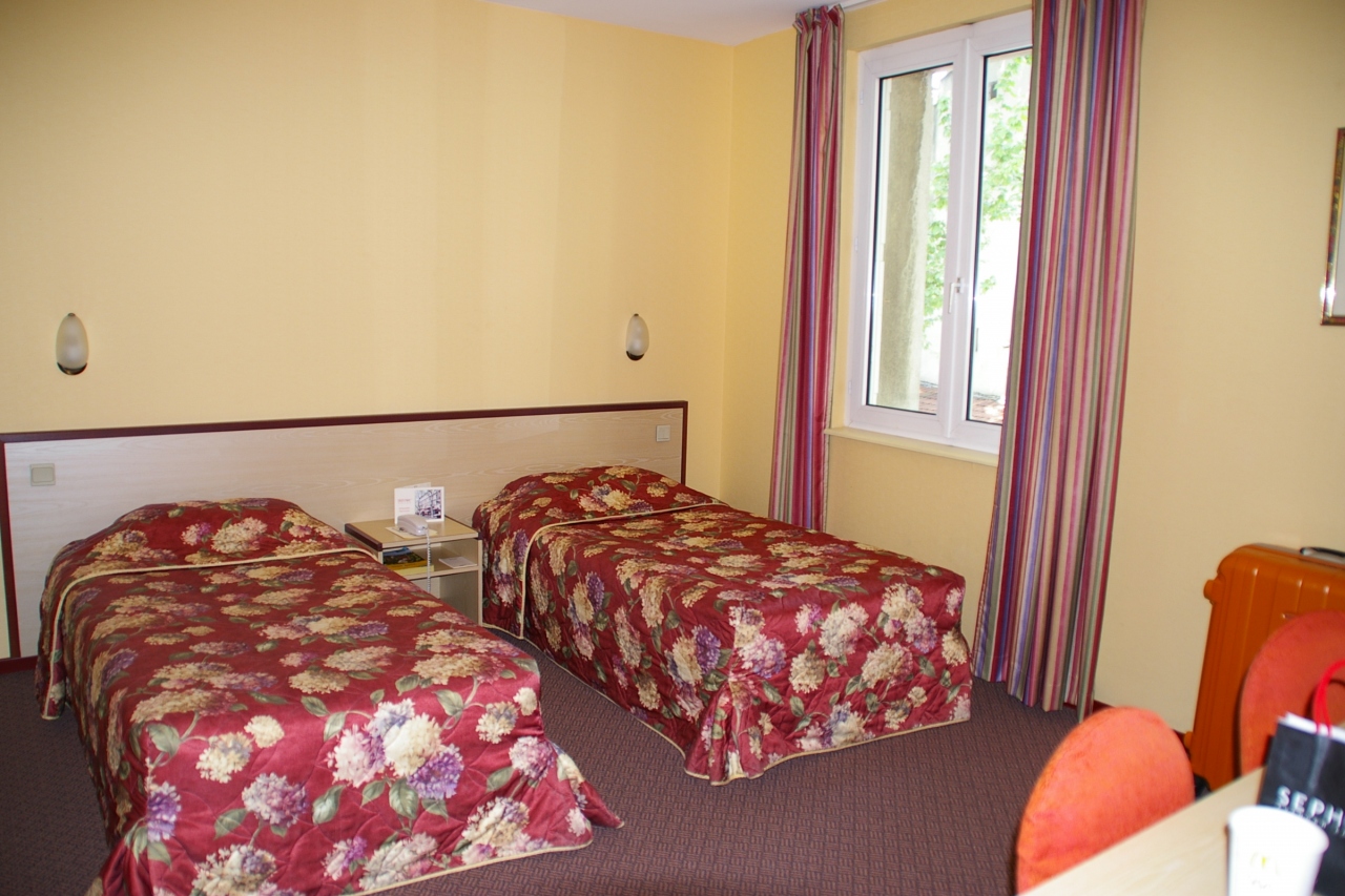 ニースの海岸まで400m、駅までは600m位のところにあるホテルです。部屋の広さは普通ですが、ベランダが広くて洗濯物なんかも干せました。