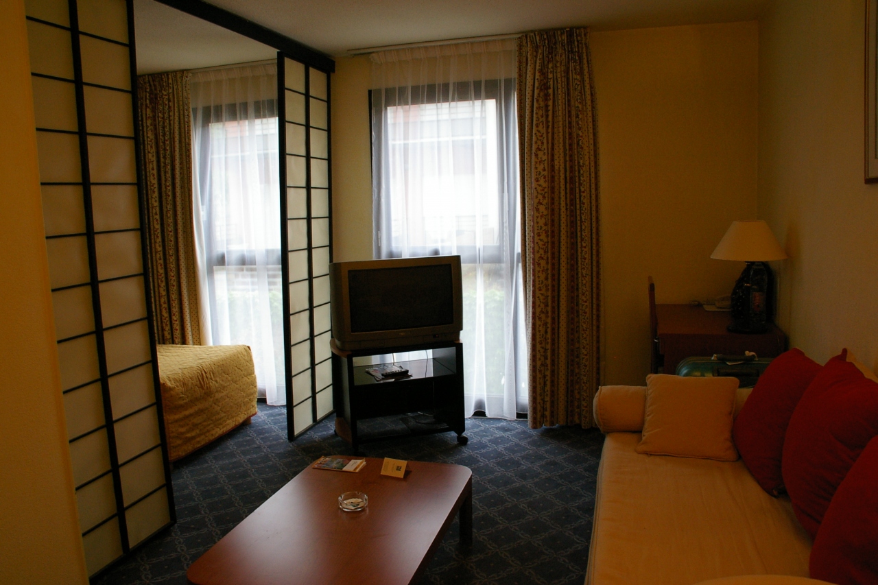 部屋が広くてリビングダイニングとベットルームがあり、ミニキッチンもついているので、自炊も可能です。ポットもあります。ヨーロッパに珍しくトイレとバスも別々でした。でも夜中バスのお湯が出ない時がありました。旅行記にも写真を載せています。↓