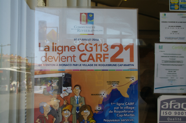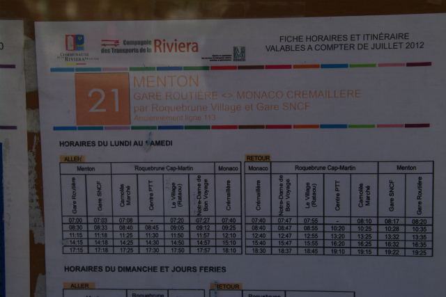 マントンからロクブリュヌ・カップ・マルタンの行きのバス番号が21番に変更になっています