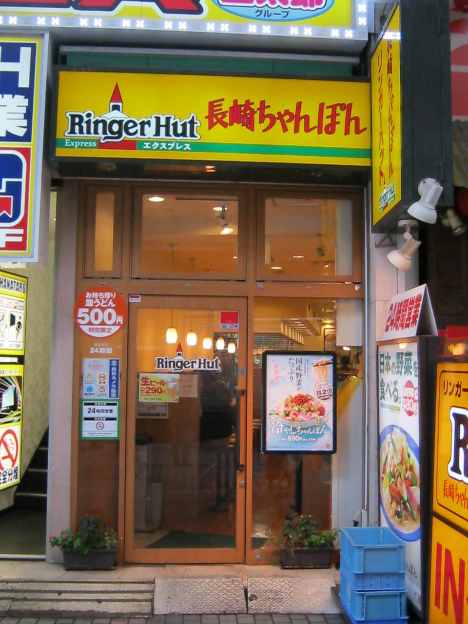 川崎の繁華街にあるリンガーハットは、24時間営業。