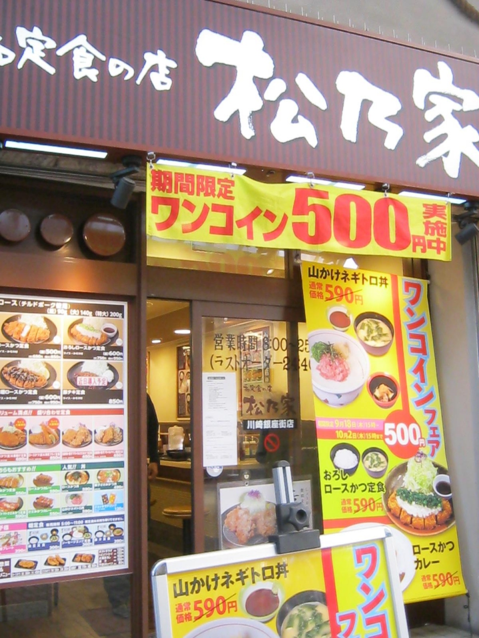 川崎駅に近い繁華街の松屋にも朝食メニューがあるので、入店してみました。