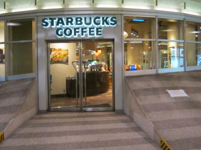 けやきひろばの中でも、真ん中の丸いデザインのお店がスターバックスです。