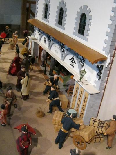 建物は立派でデザインがかわいい。ミニチュア人形で、当時の賑わいを見せてくれています。