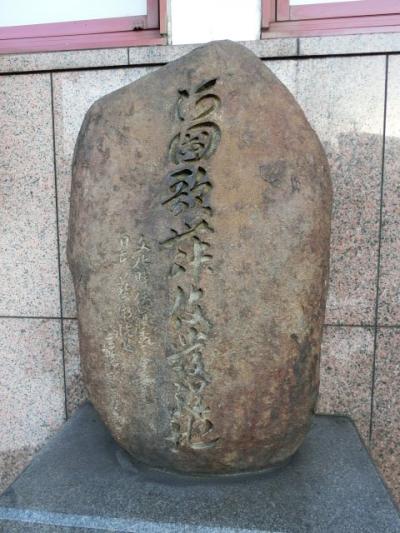 川端通り沿いを歩いていたら、南座のところ(川沿い、脇)に石碑が立っていました。