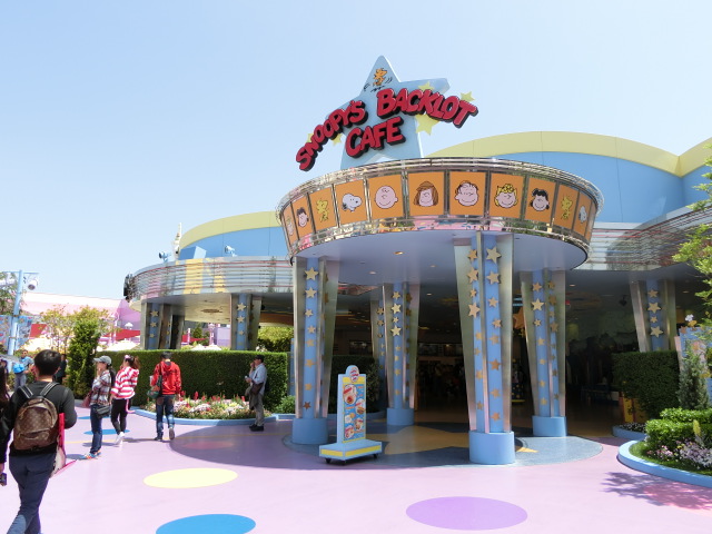 スヌーピーのキャラクターたちが、お店の外観にたくさんデザインされていて、とてもカラフル&ポップです。