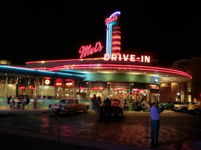 池の近くにあるレストランで、昔のアメリカのレトロな感じがかっこよかったです。