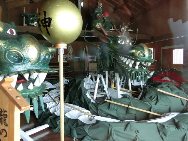そこに建物があり、龍神まつりで使われる人形を(ガラス越しですが)いつでも見ることが出来ます。