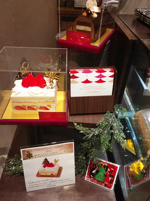 クリスマスのシーズンに行ったら、きれいな造りのクリスマスケーキ見本が飾ってありました。
