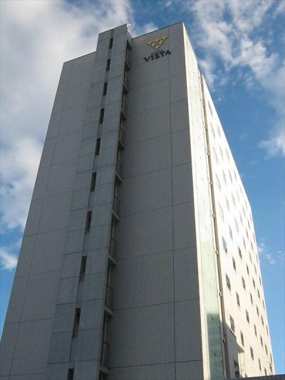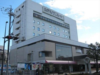 JR清水駅前から線路沿いの飲食街通りをまっすぐ進むと、とても高い建物が見えてきますが、それがこのホテルです。