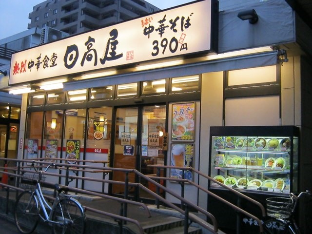 駅に向かって細い道を歩いているとこの日高屋を見つけたのですが、ポコッと出っ張った造りで、まるで駅を増築したかのようでした。