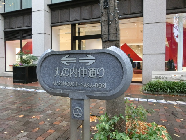 東京駅から徒歩5分。丸ビルなど昔からある建物が連ねる通りです。