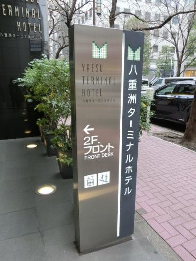 東京駅八重洲口から割と近い立地なのですが、看板だらけの街並みだしホテルの看板も小さいので、一度ホテル前を通過してしまいました。