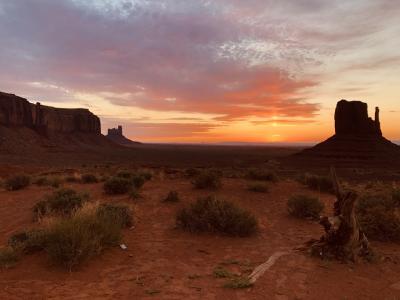 翌朝はモニュメントバレーで朝日。美しかった。赤い土、美しかった。。