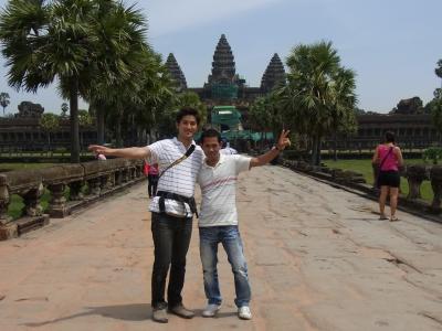 空港まで迎えに来てくれてた友達とアンコールワットをバックに!