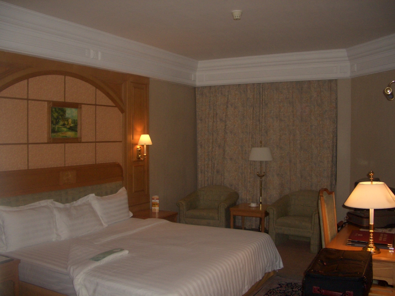 ホテル全体はリゾート的な雰囲気ですが、部屋は重厚な雰囲気が漂っています。(テレビは扉つきの家具に納まっていますし、どっかの社長室にあるようなデスクがおいてあります。)
