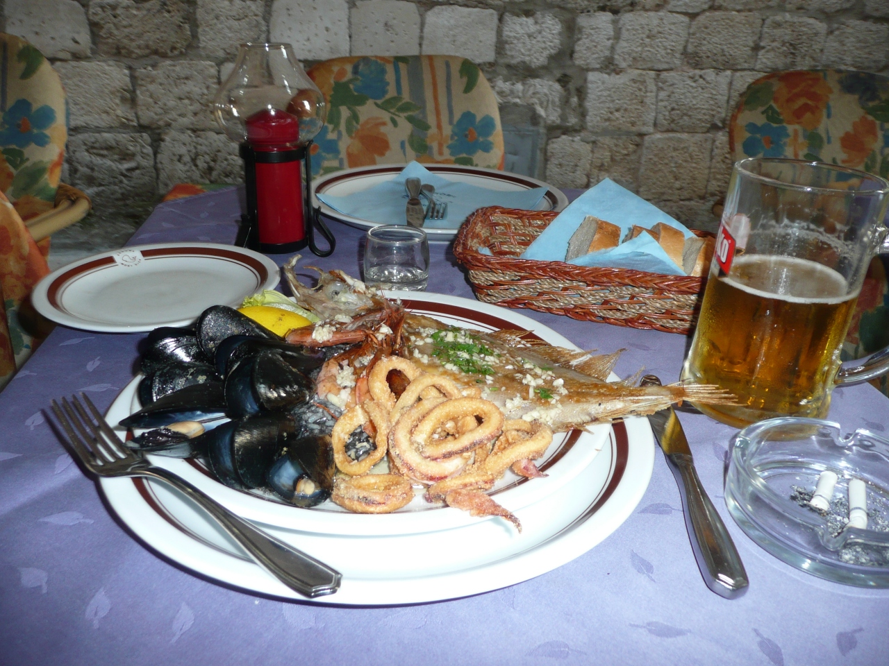 プラツァ通りから北側に階段を上って行く途中にある通りの端から端までレストランが並んでいます。