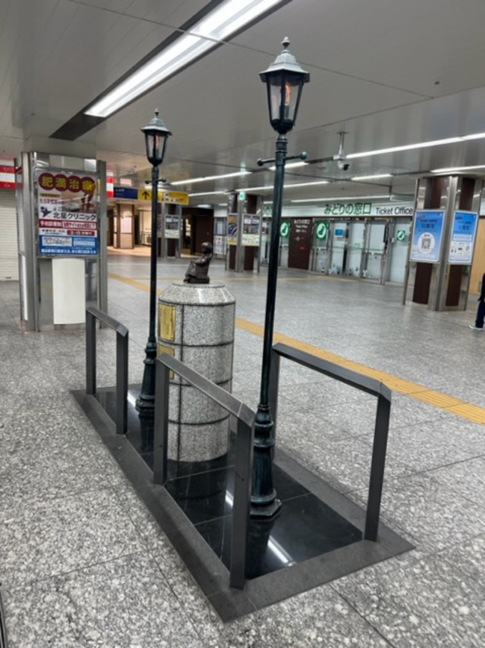 JR線、東急・みなとみらい線、京急線の改札の真ん中にあります。このモデルの女の子は外国人の養子になるも国内で病で亡くなったそうです。- 旅行時期