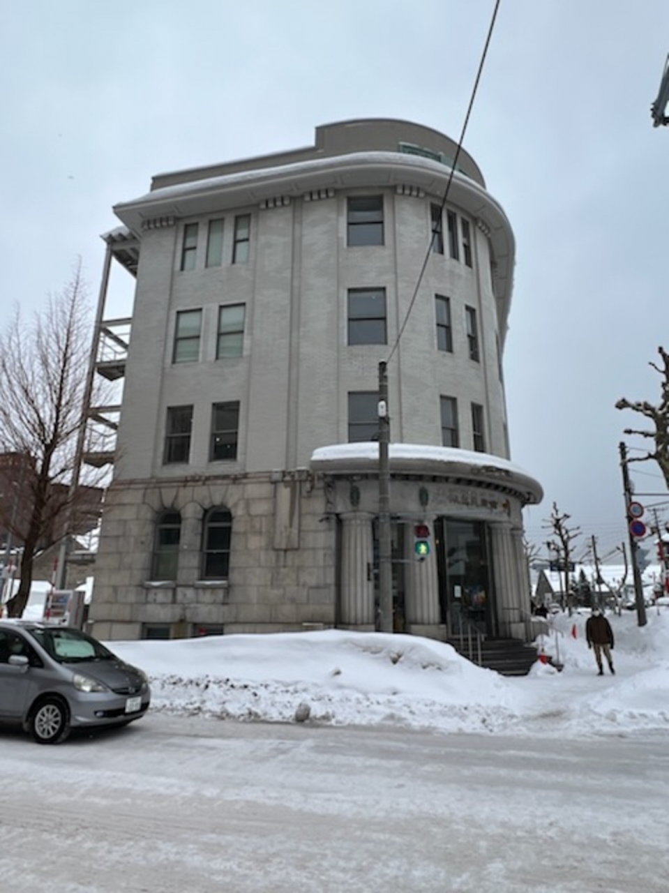 札幌1人旅で行きました。新千歳空港からJR千歳線快速エアポートで直接小樽に行きました。北のウォール街と呼ばれる地域の中心、北のウォール街の交差点にあります。建物的には普通でしょうか。今は洋服工場が入っています。