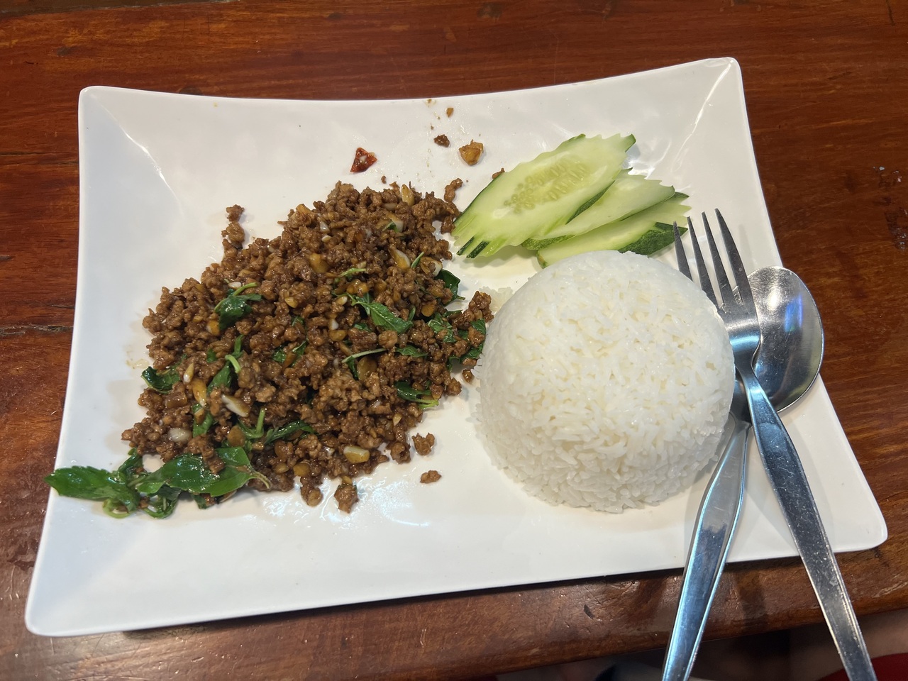 プーケットの美味しいお店ではよく出てくる歴史ある人気店です。泊まったラ ビンテージ リゾートとバングラ通りの間にありました。夕食利用です。食べたのは豚のガパオライス、チャーンビール大瓶!合わせて210バーツでした。お安い(^^)- 旅行時期