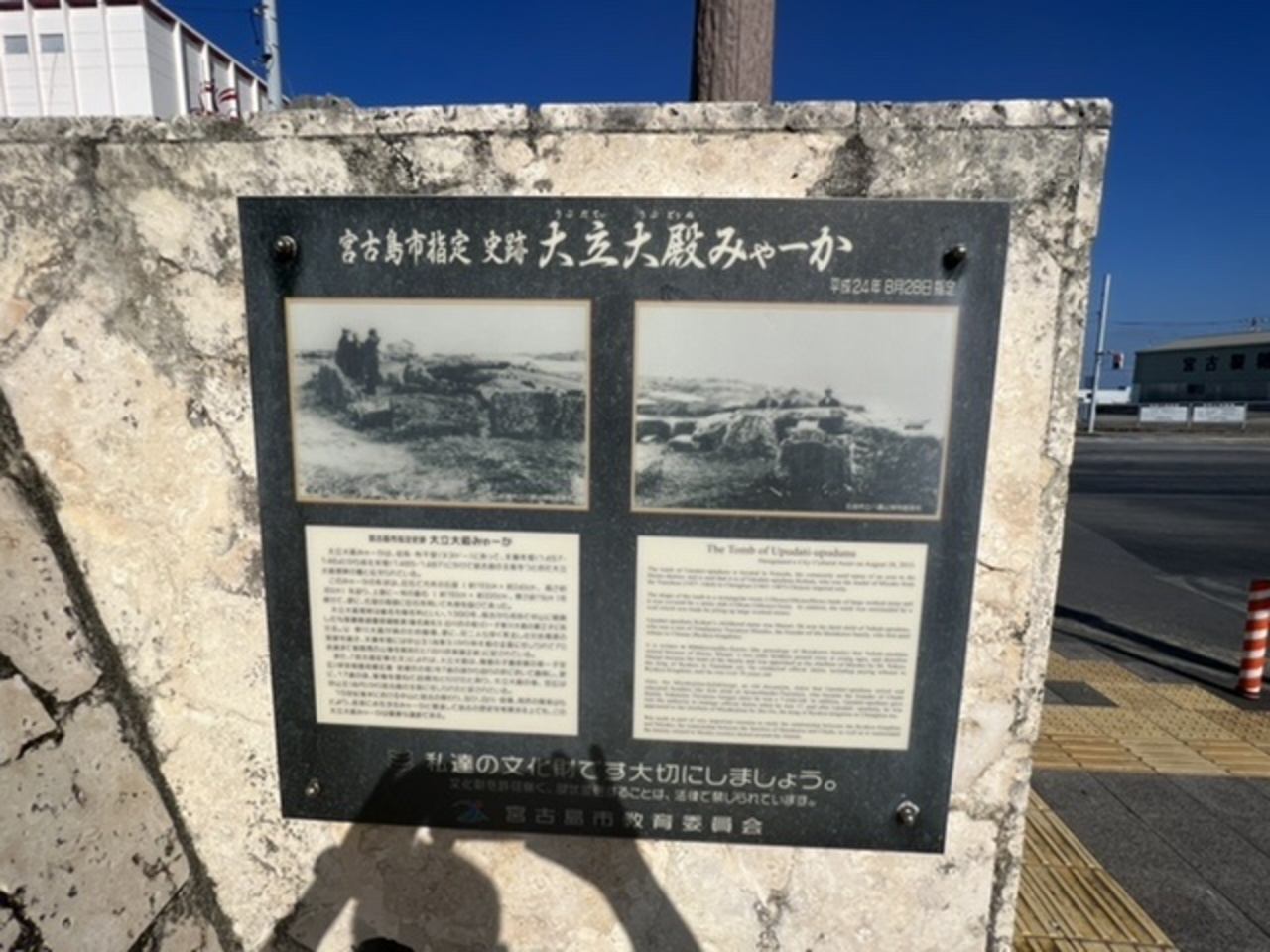 1873年に台風により座礁したドイツ商船ロベルトソン号を宮古島の島人が救助し34日間も船員をもてなしドイツに帰国させたことをドイツ皇帝ウィルヘルム1世が大変感激し、その命により1876年に建立させた碑です。