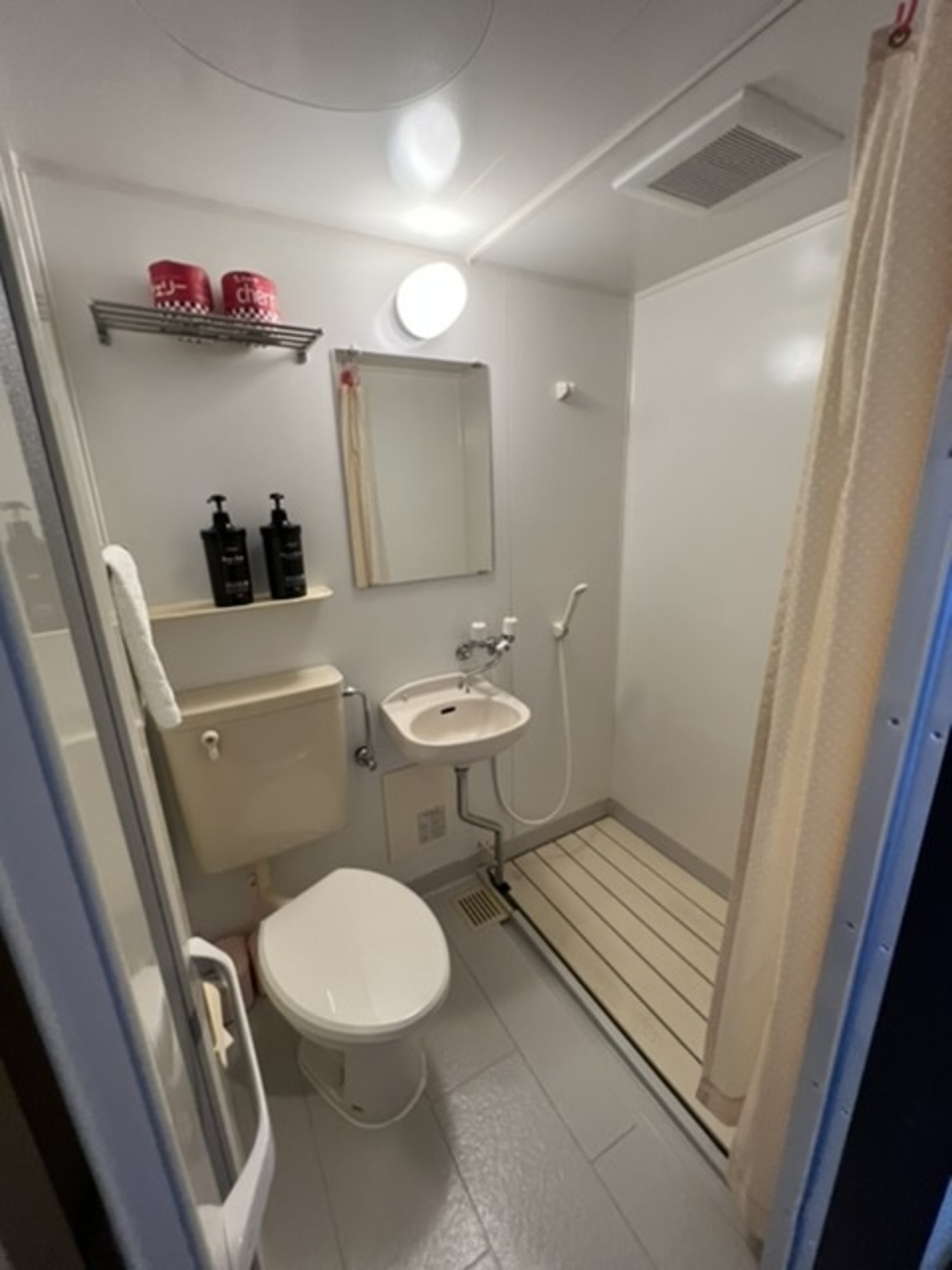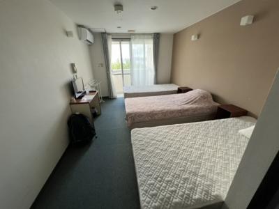 泊まった部屋はテレビ、クーラーにシャワーブース、トイレ付で快適です。1人でしたがベッドが3つもある広い部屋でした。
