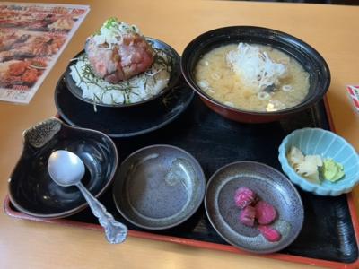 食べたのはまかない海鮮丼1,000円!海鮮がご飯の上に団子状にのっています。あら汁付きですよ。