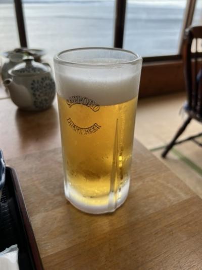 先ずは生ビール!魚三昧ですね。カレイな煮付け、焼魚、さしみのもりあわせ、あら汁!刺身の盛合せはアジ、タチウオ、イカ、メジ。あとは日本酒でいただきました。